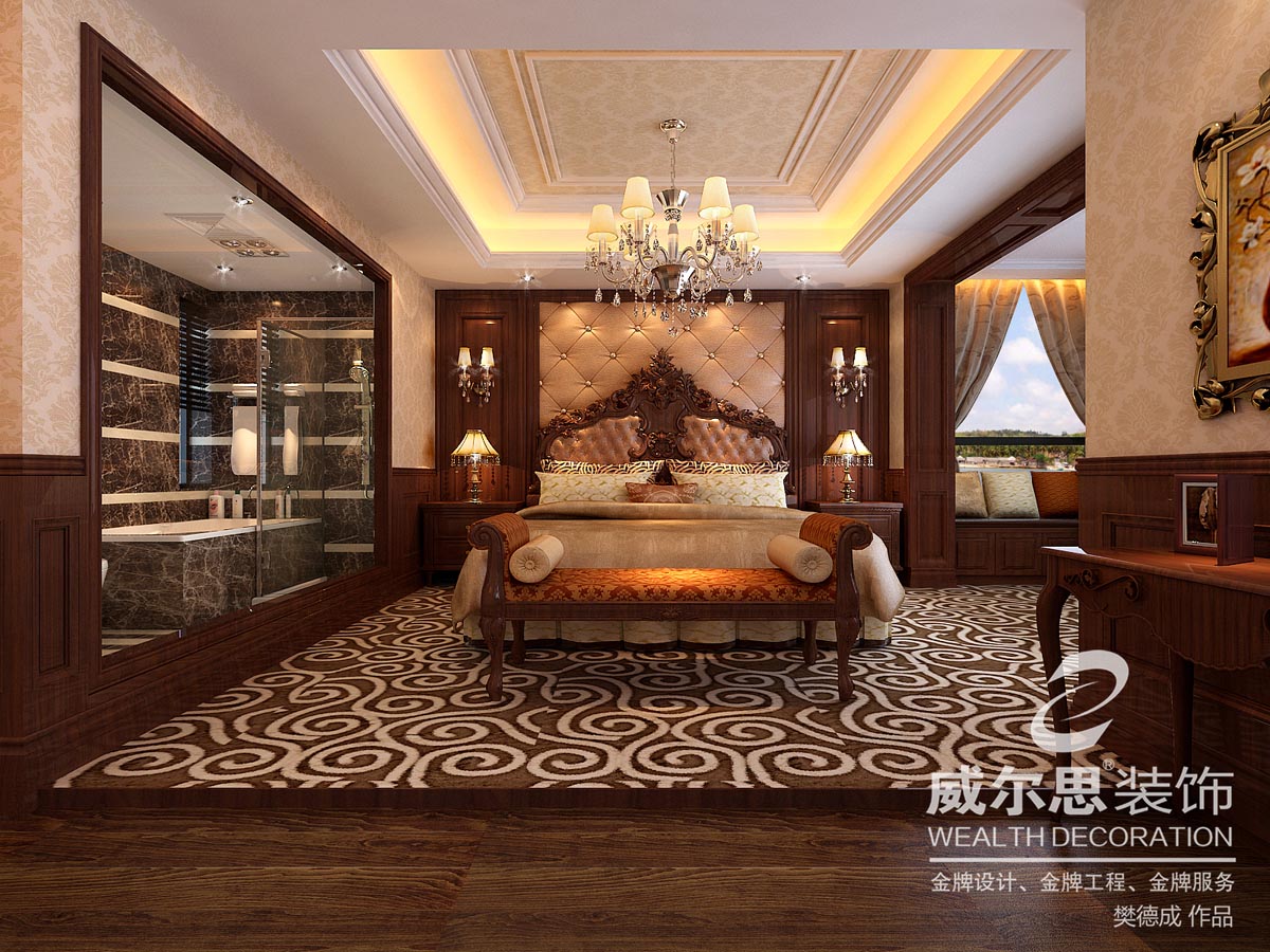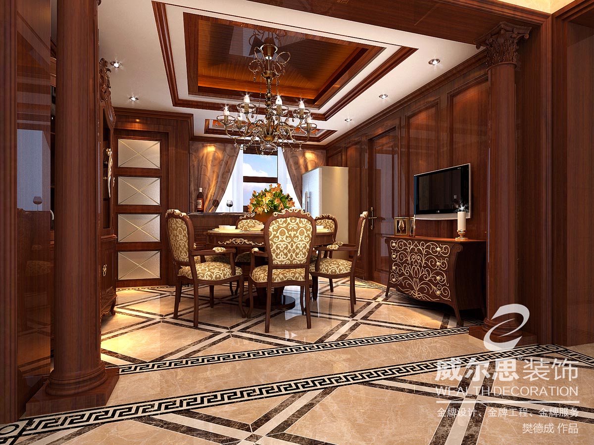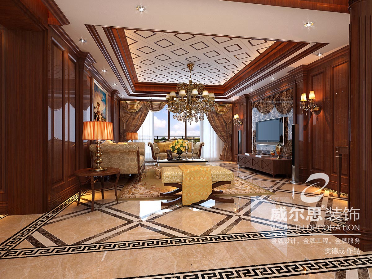 這是一位領(lǐng)秀城單身男業(yè)主,經(jīng)常居住國外,很喜歡歐式古典主義風格。本案以古典主義與現(xiàn)代手法的折衷運用是這個高檔住宅的設(shè)計立足點,棚面采用裝飾板和木線條相結(jié)合,墻面用白蠟?zāi)撅椕婧途聦嵞揪條裝飾凹凸的造型,地面采用天然大理石花樣鋪貼。配上大氣、奢華、精致的沙發(fā)、水晶燈和軟裝,在燈光的照射下凹凸有致,很有層次感。利用本案大空間、好采光,營造一種獨特文化情調(diào),一種既古典高雅尊貴氣派,又具時尚特色的視覺氛圍。