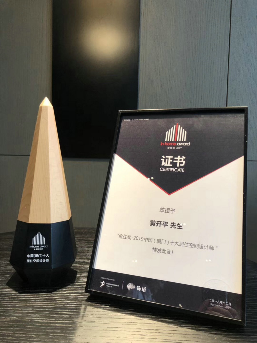 首席設計師黃開平榮獲“金住獎-2019中國(廈門)十大居住空間設計師”
